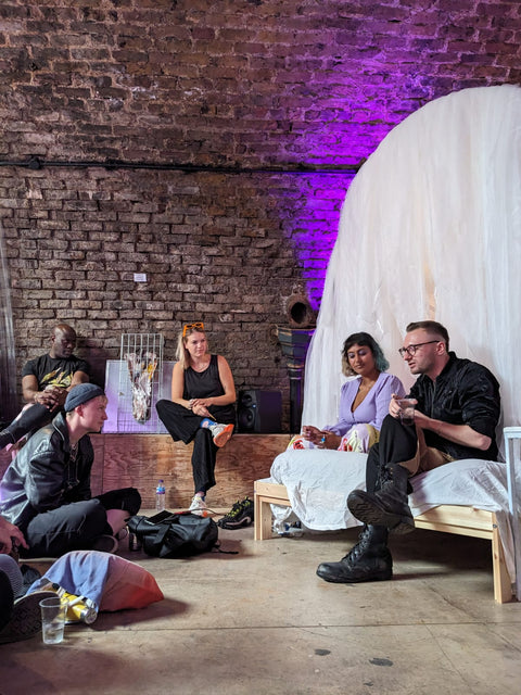 Our intention was to explore differing interpretations of queer hedonism and their relevance in contemporary culture. Amongst the set of a deconstructed bedroom, a significant environment to the shaping of queer identity, 22 artists shared their personal take on the theme.