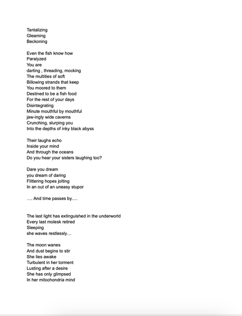 I wrote in an onomatopoeic, descriptive way about the natural environment like Robert MacFarlance, and then embodied it through spoken word like Maria Fusco’s brilliant rendition of the material granite in Master Rock. Driven by the activist nature of spoken word poet Kae Tempest and musical artist Self Esteem, I explored the use of my voice and language as material that could invite behavioural change.